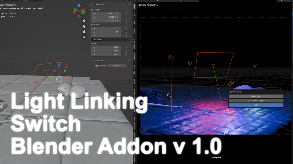 The Light Linking Switch addon is a powerful tool designed to streamline the management of lighting in Blender scenes. It simplifies the process of linking and unlinking light properties, making it easier to control multiple lights simultaneously with a single custom property. Perfect tool for animating lights switching on and off!!